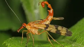 A Panorpa communis, conhecida como mosca-escorpião, é um inseto curioso que chama atenção pela aparência incomum. O macho possui uma parte traseira do corpo curvada para cima, parecendo um escorpião, mas não pica nem tem veneno. Vive em jardins, florestas e áreas úmidas, onde se alimenta principalmente de insetos mortos e restos orgânicos. Apesar do visual assustador, é totalmente inofensiva para humanos e tem um papel importante na limpeza do ambiente.